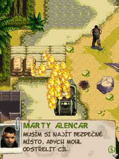 No a nebyl by to GAMELOFT kdyby ihned nezačal tvořit mobilního brášku ! Tak tedy vzhůru do recenze ! Po zapnutí hry vás uvítá opravdu povedené menu (podobá se XII 2) s pěkným záhlavím ve stylu afriky..Jsou zde položky - CONTINUE,NEW GAME,SELECT MISSION,OPTIONS,HELP,ABOUT,EXIT - po kliknutí na NEW GAME jsou zde na výběr 3 obtížnosti..Poté následuje volba vašeho žoldáka - na výběr jich je pět a všichni mužského zástupu..Po volbě vašeho charakteru následuje intro..Ležíte na posteli a nad vámi se tyčí legendární pašerák zbraní "Šakal"..To je váš hlavní úkol - zabít tohohle bastarda, a proč ? Protože on dodal zbraně oboum znepřáteleným frakcím a ty pak spolu začali válčit..Zjistíte že máte malárii, proto vstanete z postele s kalachem v ruce a hurá ven !! Zde se dostáváme k soubojům - ty probýhají jednoduše - prostě své nepřátele pokosíte AKčkem nebo Desert Eaglem - nebo pokud jste u nich blízko tak mačetou..Po prostřílení první úrovní vás čeká přesun do tábora jedné z frakcí..Zde si můžete libovolně využít čas - misi si vezmete tím, že přijdete ke stolu s papíry..Ty v každém táboře jsou tři..Za úkoly pak dostáváte zdejší měnu - diamanty..Za ně si pak můžete koupit náboje, plamenotmet,sniperku,granáty v táboře frakce..Hra má celkem dobrý děj a hodně misí které jsou bohužel stereotypní..Buď máte prostě naběhnout do tábora a ten vystřílet, nebo zničit nádrže s vodou, nebo prostě jedete na motorce a střílíte vše okolo..Potěšila mě rozmanitost úrovní protože každá je jiná - dokonce můžete potkat i lvy kteří na vás zaútočí nebo hrochy koupajíc se v řece..Far Cry 2 je prostě povedený kousek a rozhodně stojí za zahrání..